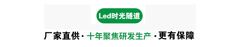 包括内球面180度显示屏,360度圆柱形内弧面显示大屏,整个隧道由LED模组无缝拼接而成。